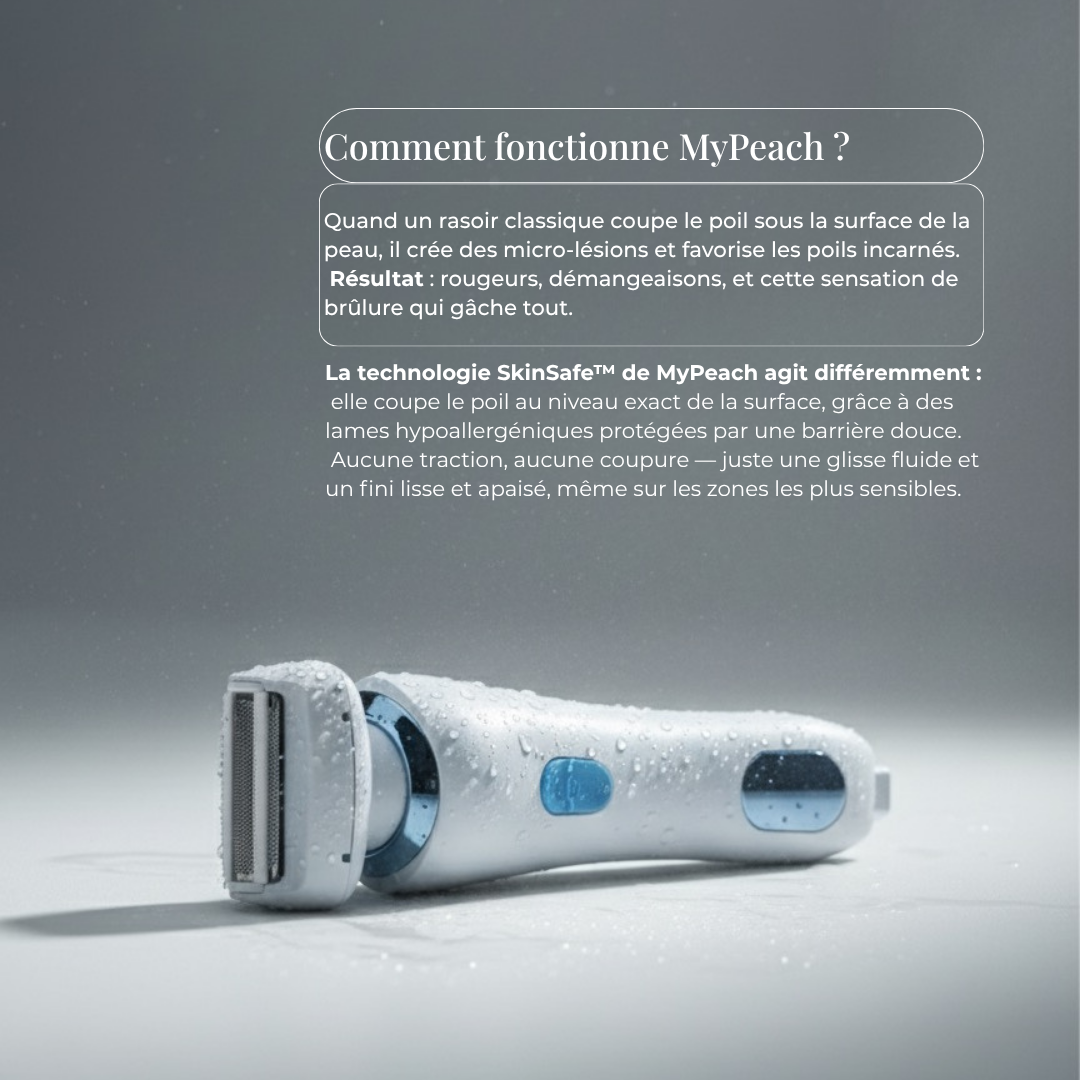 Dis adieu aux rougeurs, coupures et poils incarnés. MyPeach est pensé pour celles qui veulent une peau lisse, douce et apaisée — même sur les zones sensibles.